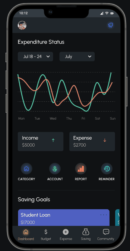 I did the end-to-end design process, conducting user research to understand financial challenges faced by young adults. Based on insights, I created wireframes, interactive prototypes, and iterated designs through usability studies. Prioritizing accessibility and intuitive user flows, I designed a seamless experience to help users track expenses, manage budgets, and achieve their savings goals.