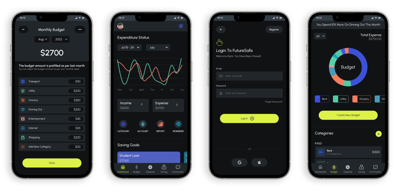 FutureSafe is a mobile app and responsive website designed to help young adults develop better financial habits by tracking expenses, managing budgets, and setting savings goals. The platform provides a real-world approach to financial management, empowering users to make informed financial decisions.