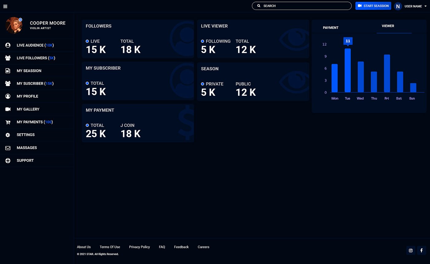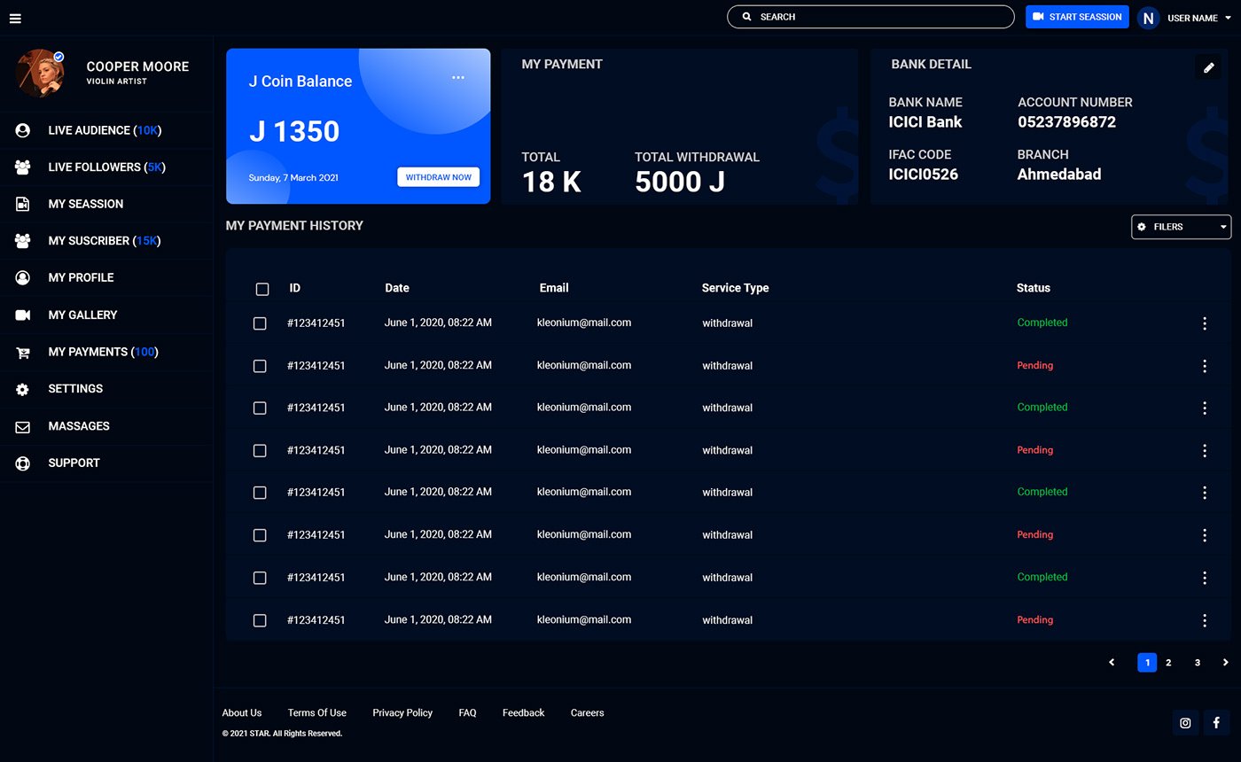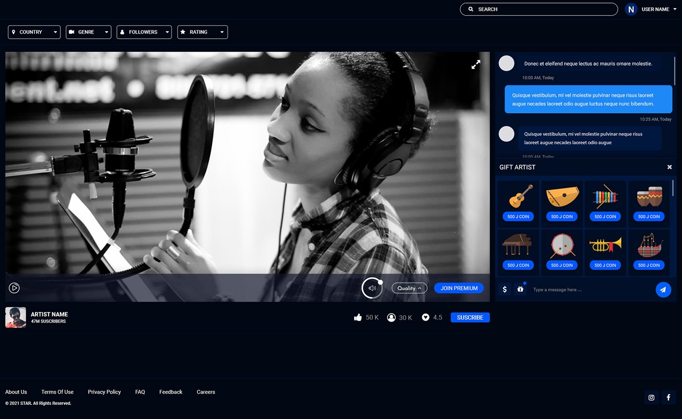 Bringing performances to the digital stage! I designed the UI/UX for a live streaming app tailored for artists, allowing them to schedule live shows, sell tickets, and receive virtual gifts from their audience.